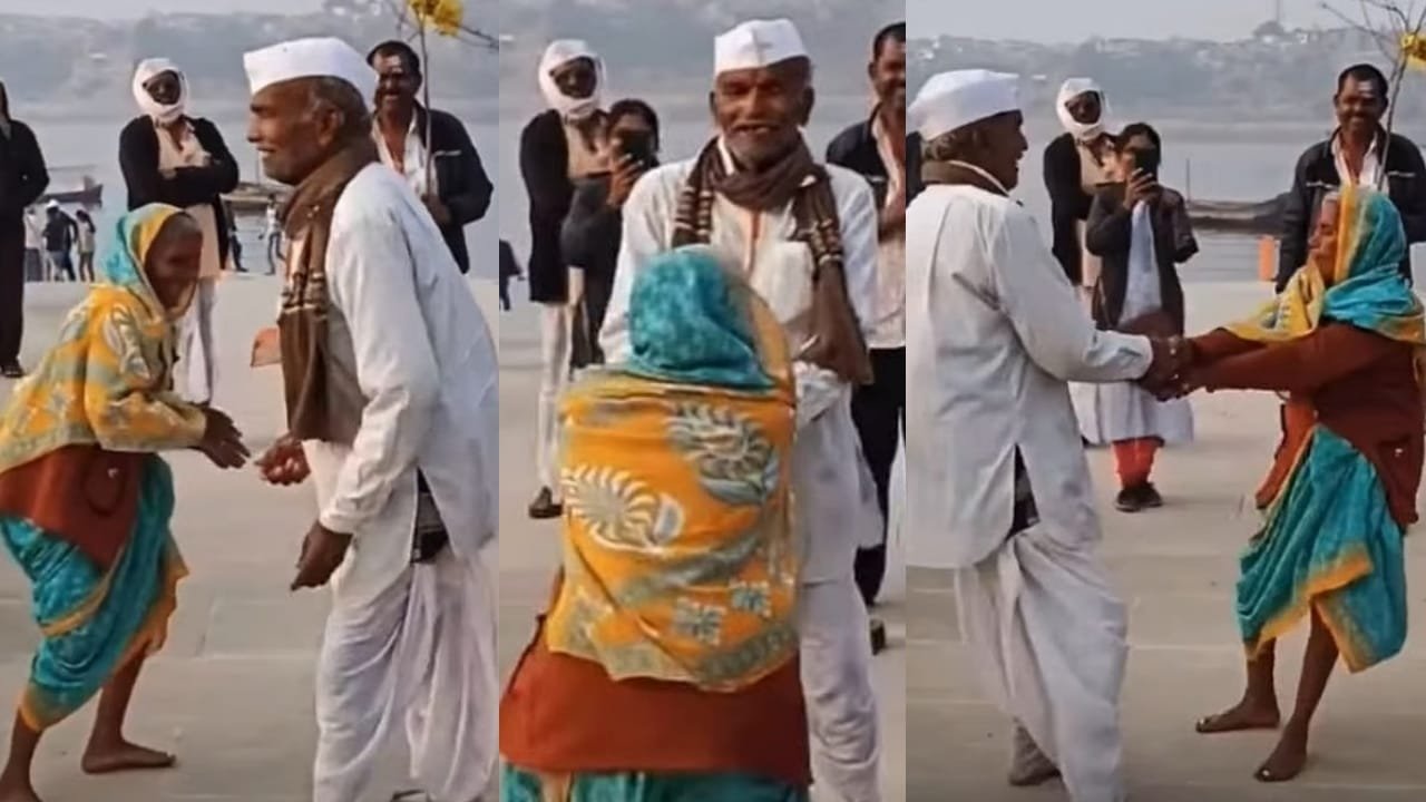 আহা কী আনন্দ! কুম্ভে আসার স্বপ্ন পূরণ হয়েছে, আনন্দে নাচ বৃদ্ধ দম্পতির