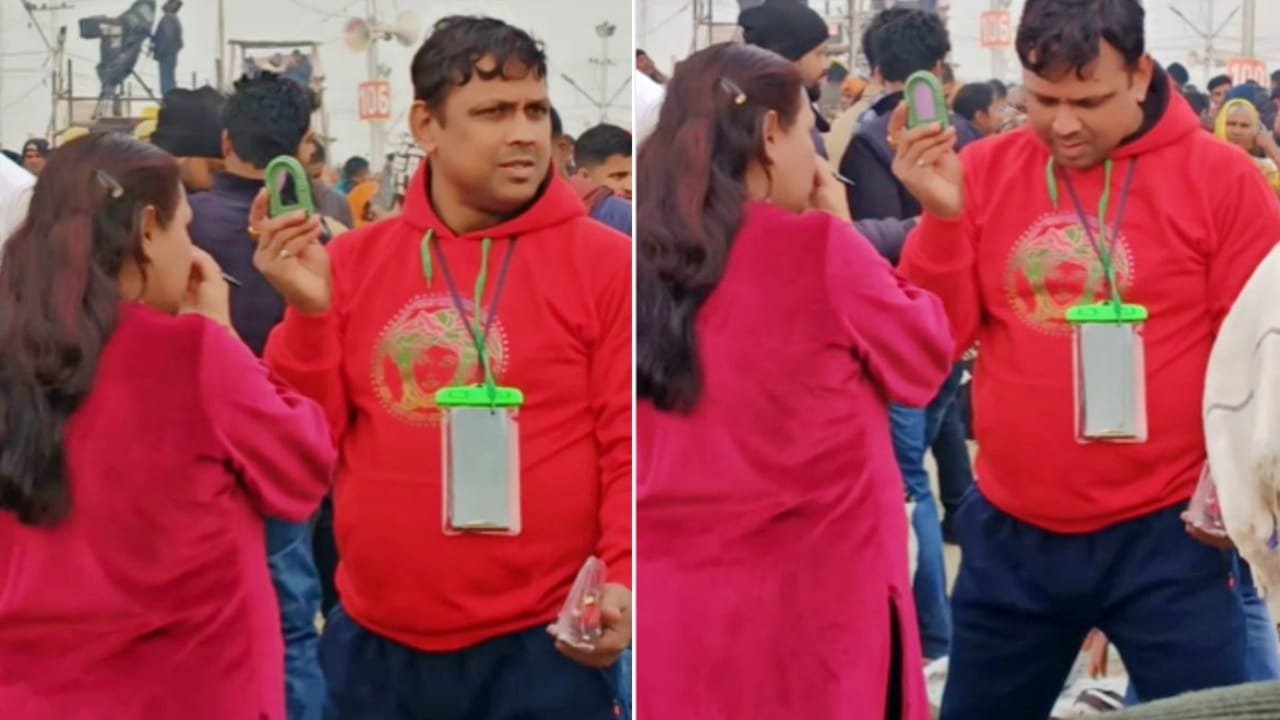 কুম্ভের ভিড়ে এক হাতে আয়না অন্য হাতে মেকআপ বক্স ধরে স্ত্রীর সাজার ইচ্ছে পূরণ করলেন স্বামী! প্রেমকে কুর্নিশ নেটিজেনদের
