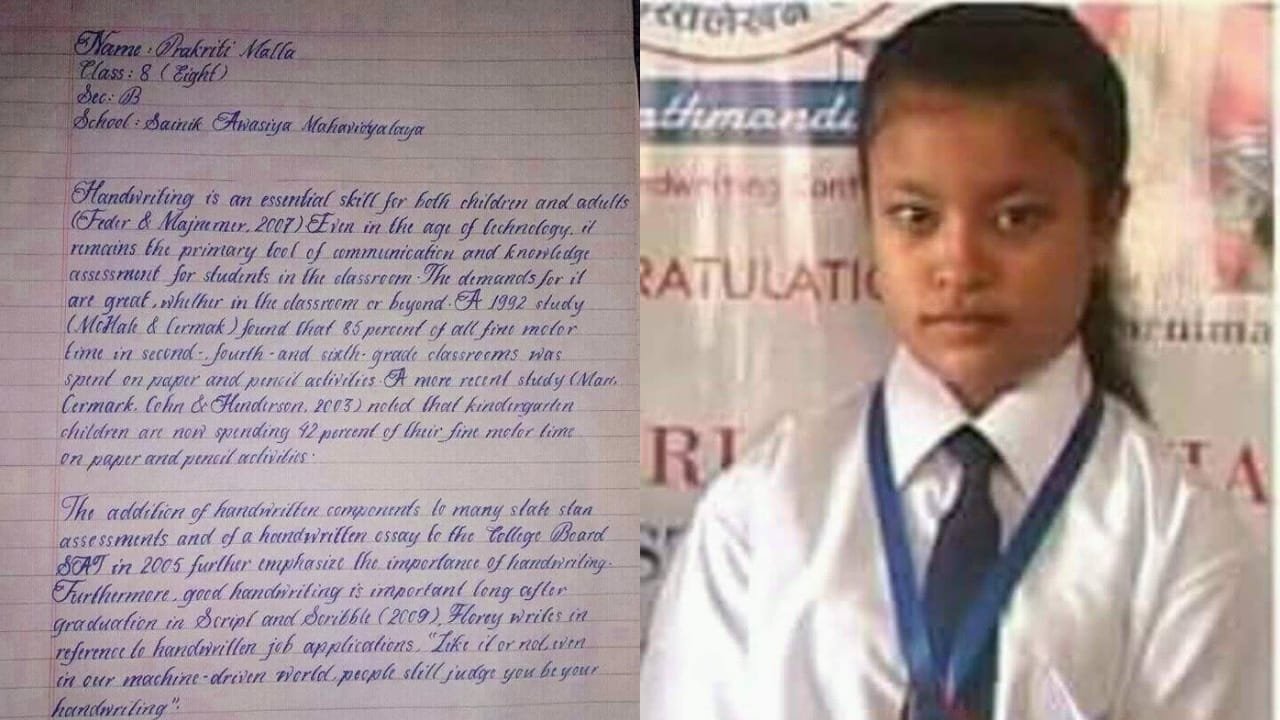 তবে সম্প্রতি নেপালের এক শিক্ষার্থী নিজের হাতের লেখা দিয়ে মুগ্ধ করেছে বিশ্ববাসীকে। তার হাতের লেখা তাকে বিশ্বের সবচেয়ে সুন্দর হাতের লেখার সম্মানে দিয়েছে। কাগজের উপর তার হাতের লেখা যেন মনে হচ্ছে মনি মুক্ত হীরে ছড়ানো। এই শিক্ষার্থীর নাম প্রকৃতি মল্ল।